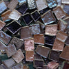 Transparent glass tiles with mirror backing and metallic colour effect
