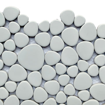 Onze kiezelvormige tegels zijn prachtig afgewerkt met een mooie glazuurlaag en gemaakt van hooggebakken porselein. Deze tegels zijn niet alleen esthetisch aantrekkelijk, maar ze zijn ook zeer duurzaam. Het glazuur maakt ze vorst- en krasbestendig, waardoor ze zowel binnen als buiten kunnen worden gebruikt. Op een vel van 30x30cm vindt u verschillende maten tegels, waardoor u een gevarieerd en interessant mozaïekontwerp kunt creëren. Met deze kiezelvormige tegels kunt u uw creativiteit de vrije loop laten en unieke mozaïekontwerpen maken. Ze voegen een prachtige textuur en glans toe aan uw projecten, of u ze nu binnen in uw woning gebruikt of buiten in uw tuin. Geniet van de veelzijdigheid en schoonheid van deze hoogwaardige tegels.